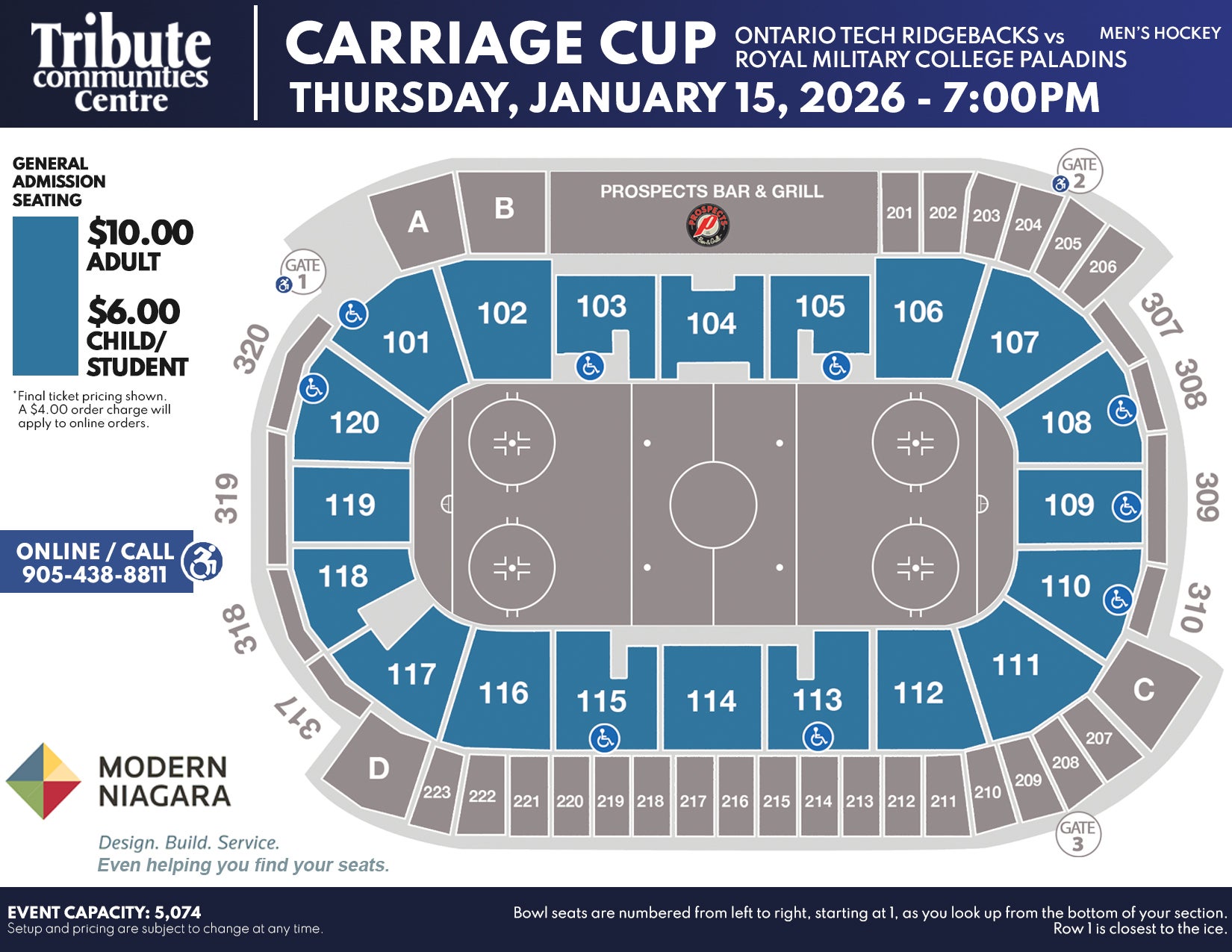 The biggest game of the year returns to the Tribute Communities Centre as the Ontario Tech Ridgebacks take on the RMC Paladins in the third annual Carriage Cup on Thursday, January 15, 2026.
