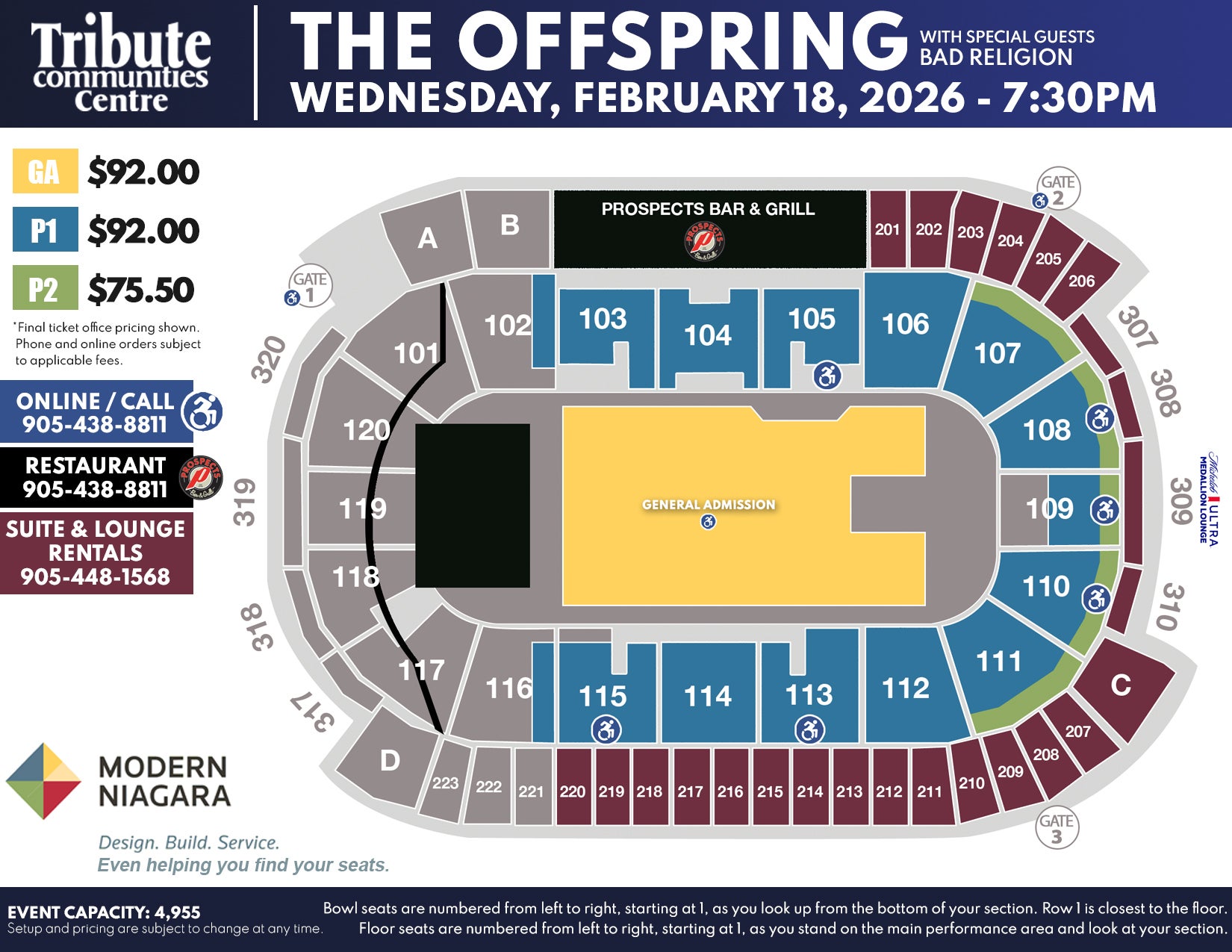 On event days, tickets for that day’s event will become unavailable via online one hour prior to the scheduled start of the event. After this time, tickets will only be available for purchase in person at the Tribute Communities Centre Ticket Office or by phone.