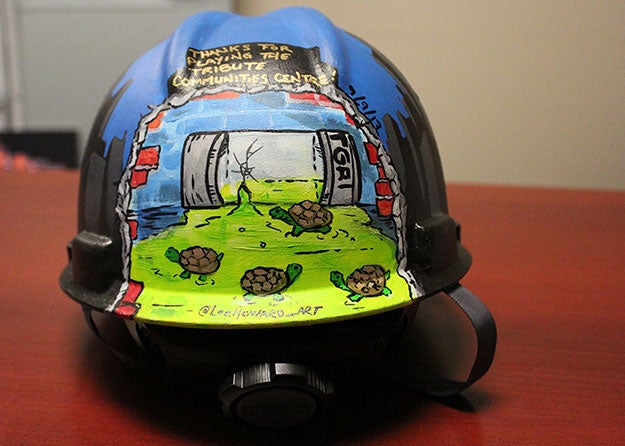 The result? A custom-painted hard hat with the four turtles, ooze and all!